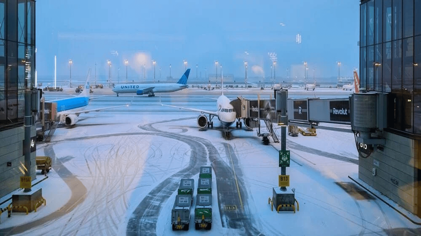 Через це в аеропорту спостерігають масові скасування й затримки рейсів, десятки тисяч пасажирів застрягли в терміналах.